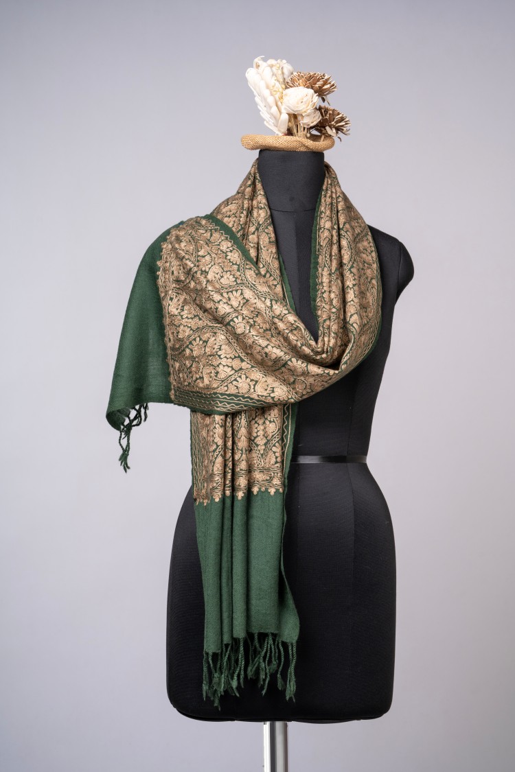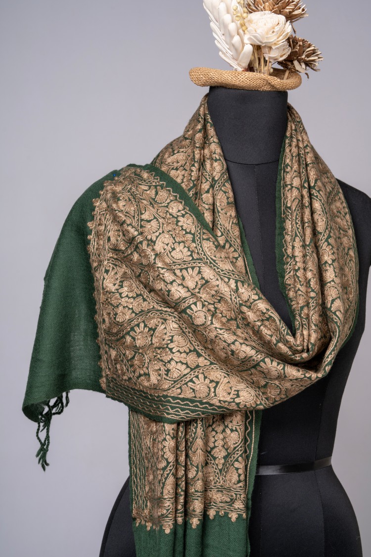 Aari matka embroidered shawl – Green