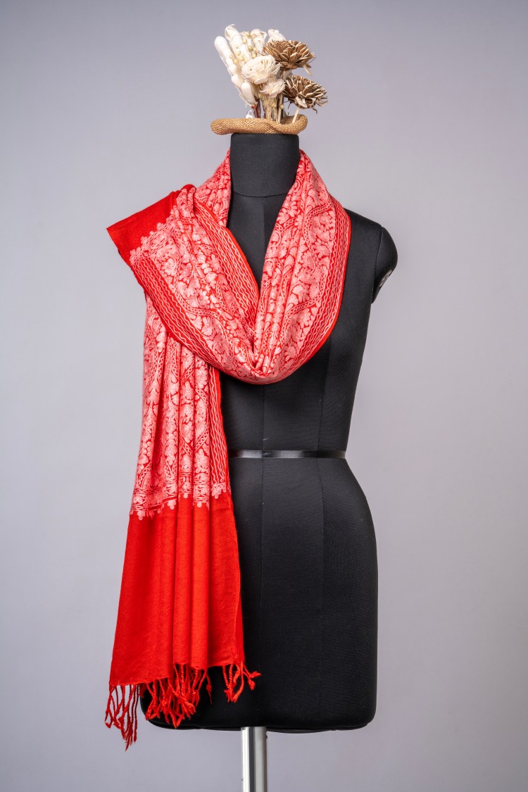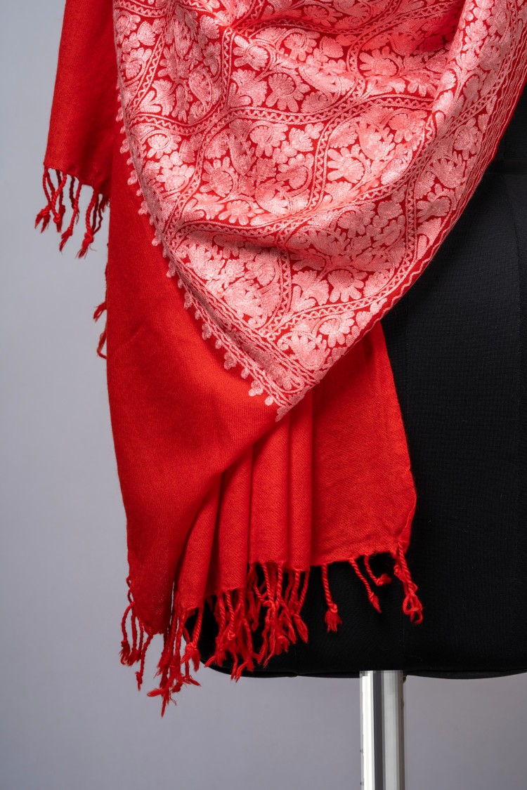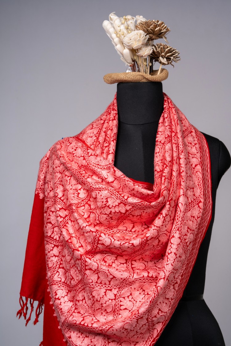 Aari matka embroidered shawl – Red